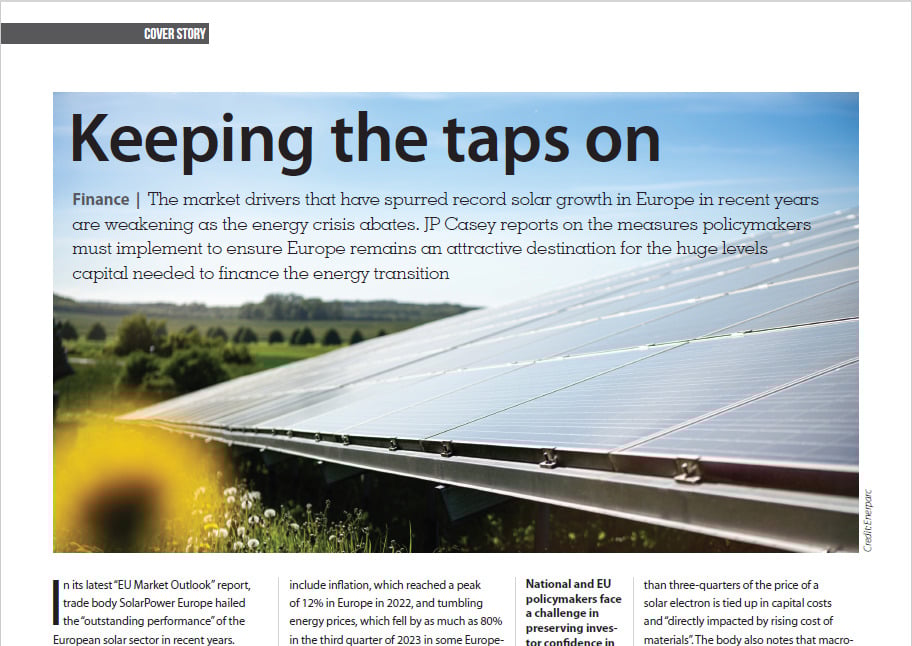 The market drivers that have spurred record solar growth in Europe in recent years are weakening as the energy crisis abates. JP Casey reports on the measures policymakers must implement to ensure Europe remains an attractive destination for the huge levels capital needed to finance the energy transition.
