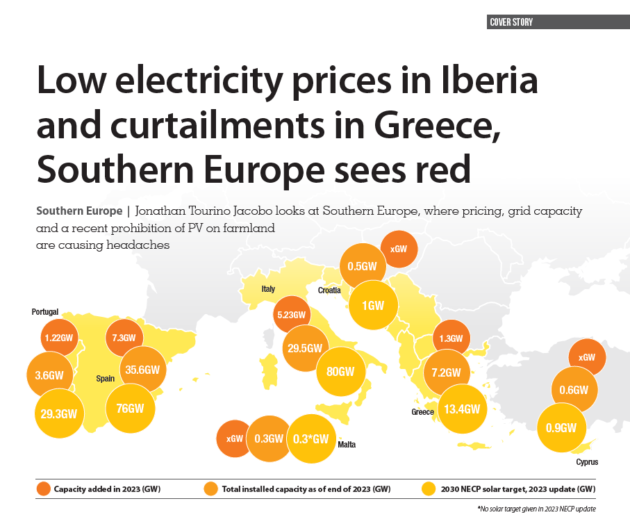 Jonathan Tourino Jacobo looks at Southern Europe, where pricing, grid capacity and a recent prohibition of PV on farmland are causing headaches.