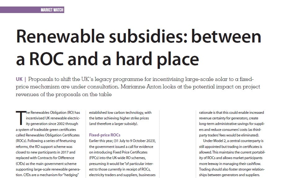 Proposals to shift the UK’s legacy programme for incentivising large-scale solar to a fixed-price mechanism are under consultation. Marianne Anton looks at the potential impact on project revenues of the proposals on the table