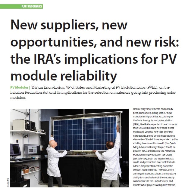 Tristan Erion-Lorico, VP of Sales and Marketing at PV Evolution Labs (PVEL), on the Inflation Reduction Act and its implications for the selection of materials going into producing solar modules.