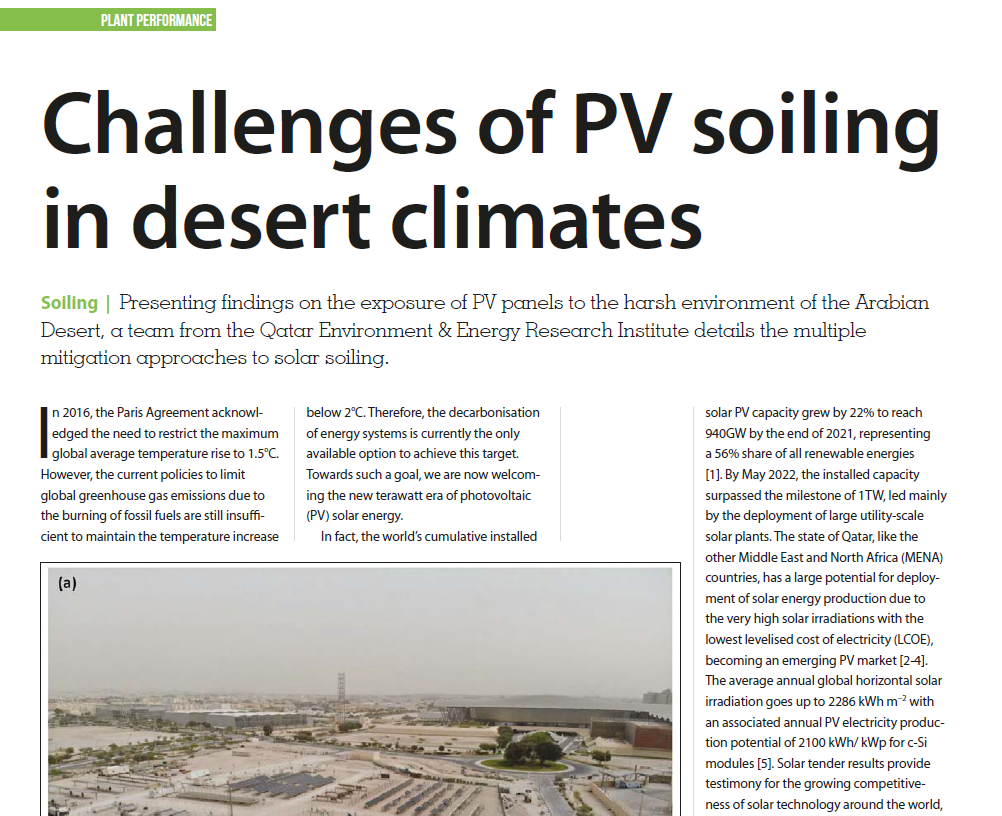 Presenting findings on the exposure of PV panels to the harsh environment of the Arabian Desert, a team from the Qatar Environment & Energy Research Institute details the multiple mitigation approaches to solar soiling.