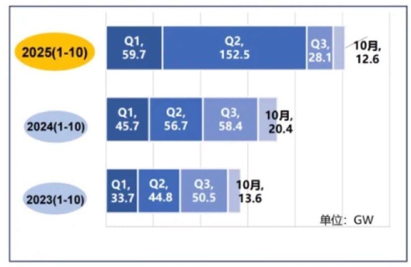 From January to October 2025, new PV installations in China reached 252.87GW, up 39.5% year-on-year. The figure saw a 150% year-on-year growth from January to May, but a 46% year-on-year decline from June to October.