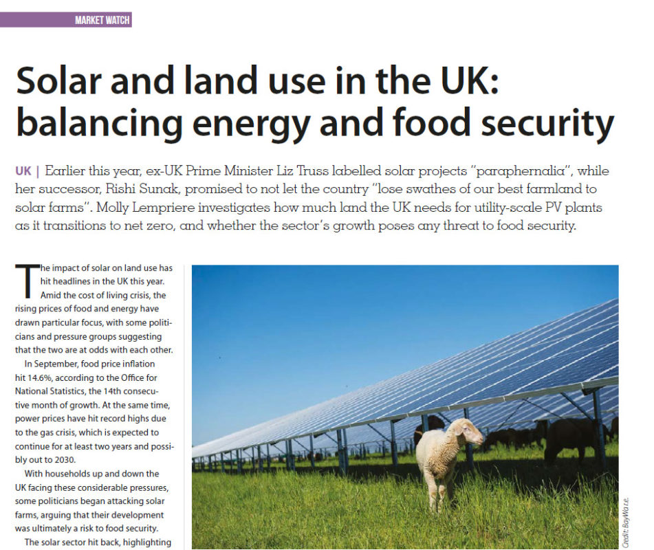 Earlier this year, ex-UK Prime Minister Liz Truss labelled solar projects “paraphernalia”, while her successor, Rishi Sunak, promised to not let the country “lose swathes of our best farmland to solar farms”. Molly Lempriere investigates how much land the UK needs for utility-scale PV plants as it transitions to net zero, and whether the sector’s growth poses any threat to food security.