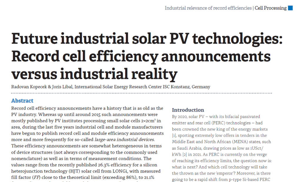 By Radovan Kopecek & Joris Libal, International Solar Energy Research Center ISC Konstanz, Germany