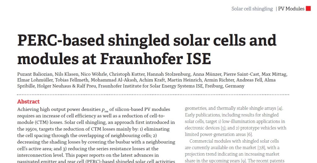 This paper reports on the latest advances in passivated emitter and rear cell (PERC)-based shingled solar cell activities at Fraunhofer ISE. The approach taken is to fabricate 6" host wafers from