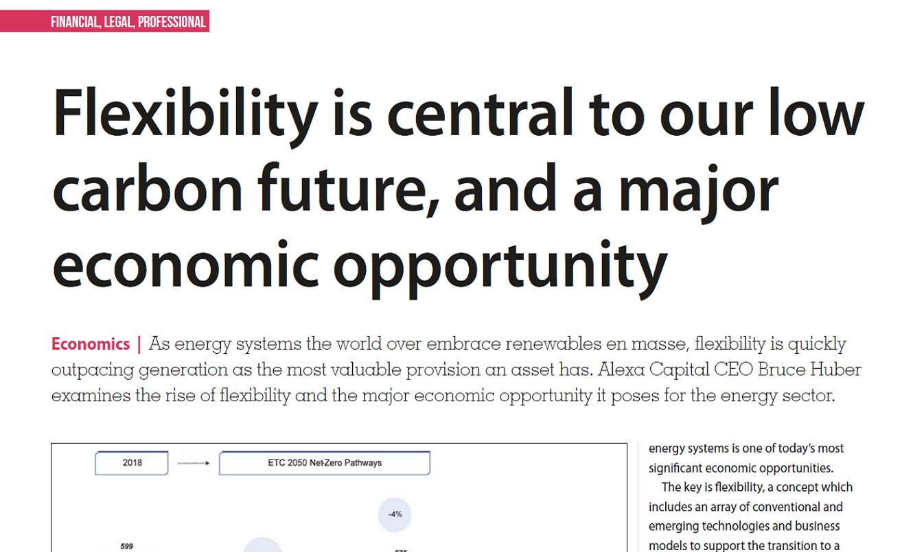 As energy systems the world over embrace renewables en masse, flexibility is quickly outpacing generation as the most valuable provision an asset has. Alexa Capital CEO Bruce Huber examines the rise of flexibility and the major economic opportunity it poses for the energy sector.