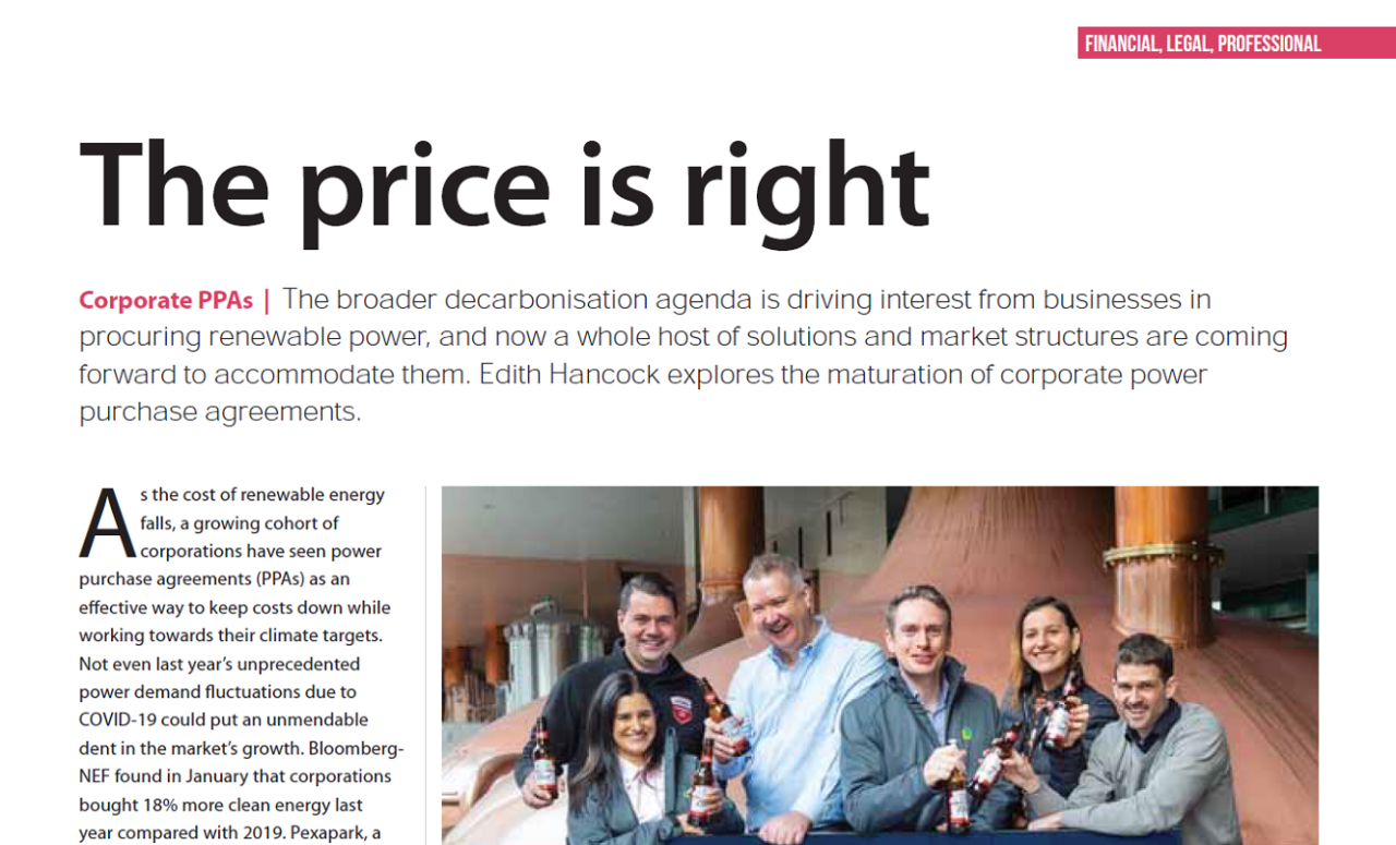 The broader decarbonisation agenda is driving interest from businesses in procuring renewable power, and now a whole host of solutions and market structures are coming forward to accommodate them. Edith Hancock explores the maturation of corporate power purchase agreements.