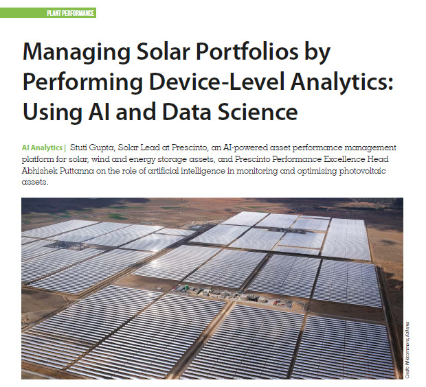 Stuti Gupta, Solar Lead at Prescinto, an AI-powered asset performance management platform for solar, wind and energy storage assets, and Prescinto Performance Excellence Head Abhishek Puttanna on the role of artificial intelligence in monitoring and optimising photovoltaic assets.