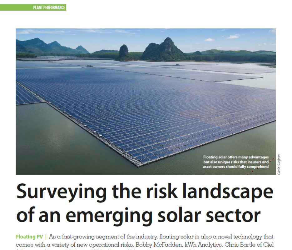 As a fast-growing segment of the industry, floating solar is also a novel technology that comes with a variety of new operational risks. Bobby McFadden, kWh Analytics, Chris Bartle of Ciel & Terre and James Markos of Willis Towers Watson explore some of these and their implications from an insurance perspective.